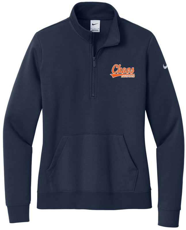 Built with versatility in mind, this brushed-back 1/2-zip has an elevated look which makes it perfect for work or play. Design details include a zip-through collar with dyed-to-match zipper. Front pouch pocket. Rib knit cuffs and hem. A contrast Swoosh logo is embroidered on left sleeve. Made of 8.3-ounce, 80/20 cotton/polyester.