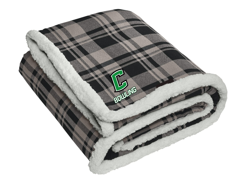 Classic soft flannel on the front with cozy sherpa fleece on the back this blanket is perfect for bundling up beside a fire on a chilly day. 10.4-ounce linear 100% cotton flannel; 12.6 ounce linear yard 100% polyester sherpa Fully hemmed Port Pocket for decoration access Dimensions: 50' x 60'