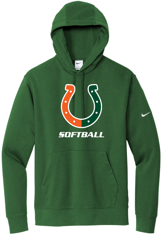 Combining classic Nike style with the soft comfort of brushed-back fleece, this premium hoodie is a closet staple. Jersey-lined, three-panel hood with dyed-to-match drawcords and front pouch pocket. Rib knit cuffs and hem. A contrast Swoosh logo is embroidered on left sleeve. Made of 8.2-ounce, 80/20 cotton/polyester.