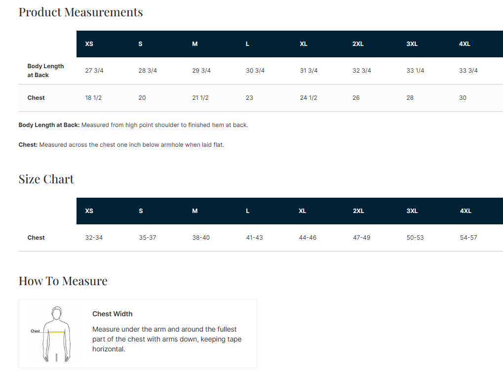 Click to view sizing chart.