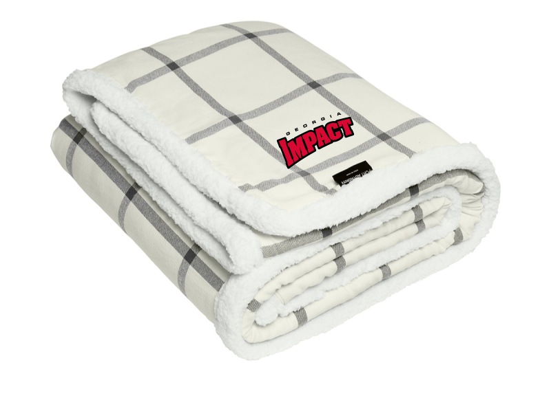 Classic soft flannel on the front with cozy sherpa fleece on the back this blanket is perfect for bundling up beside a fire on a chilly day. 10.4-ounce linear 100% cotton flannel; 12.6 ounce linear yard 100% polyester sherpa Fully hemmed Port Pocket for decoration access Dimensions: 50' x 60'