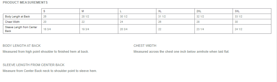 Click to view sizing chart.