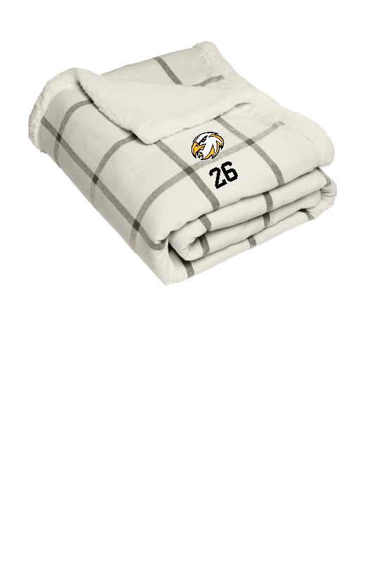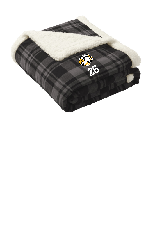 Classic soft flannel on the front with cozy sherpa fleece on the back this blanket is perfect for bundling up beside a fire on a chilly day. 10.4-ounce linear 100% cotton flannel; 12.6 ounce linear yard 100% polyester sherpa Fully hemmed Port Pocket for decoration access Dimensions: 50' x 60'